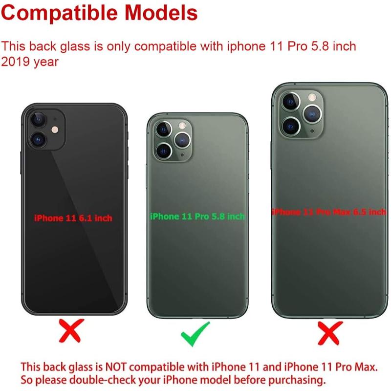 This replacement back glass is designed specifically for the Apple iPhone 11 Pro. It restores the sleek and original appearance after damage such as cracks or shattering to the rear glass panel.