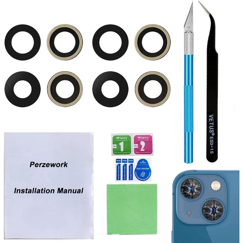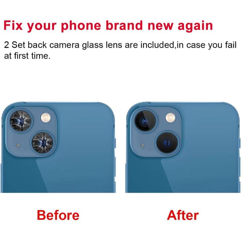 This replacement camera lens fits Apple iPhone 13 and 13 Mini models, matching original specifications for clarity and durability. It is ideal for repairing scratched, cracked, or damaged camera lenses, ensuring your device maintains its high-quality imaging capabilities. Professional installation is advised to ensure proper fit and performance.