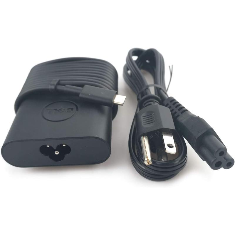 Genuine 65W USB Type-C AC power adapter for Dell laptops, featuring multiple output voltages (5V/9V/15V/20V) and a compact design for efficient charging.