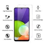 High-quality tempered glass screen protector for Samsung Galaxy A22 4G, offering 9H hardness, oleophobic coating, and bubble-free installation to keep your device’s display pristine.