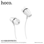 hoco. M34 Honor Music wired in-ear earphones in white, featuring a built-in microphone and one-button control. Compatible with any device that has a 3.5 mm headphone jack.