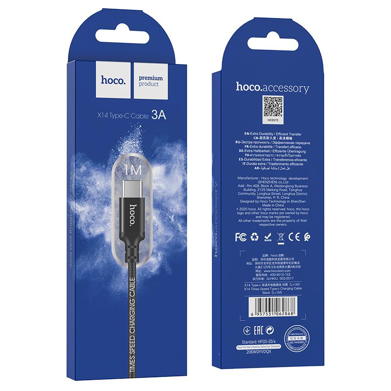 The hoco. X14 Fast Type-C Nylon Braid Charging Cable in Black delivers a powerful mix of speed, strength, and style. Wrapped in a rugged nylon braided jacket, it resists wear, knots, and daily strain. Its 1‑meter length offers ideal reach—perfect for desk setups, bedside charging, or on-the-go use. With reinforced connectors and optimized for fast charging, it guarantees reliable power delivery and stable data syncing with all USB‑C devices.