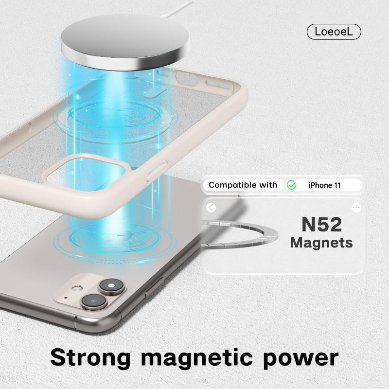 This clear protective case is designed to highlight the original design of the iPhone 11 while offering everyday protection. It features a transparent polycarbonate back and flexible TPU sides. The case includes an internal magnetic ring that mimics MagSafe compatibility—offering a secure fit with magnetic accessories and wireless chargers. However, because the iPhone 11 lacks built-in MagSafe hardware, magnetic hold is subtler compared to official MagSafe cases, and you may experience slower charging speeds or weaker attachment. Still, it provides a slim, functional, and stylish solution for wireless charging and accessory use.