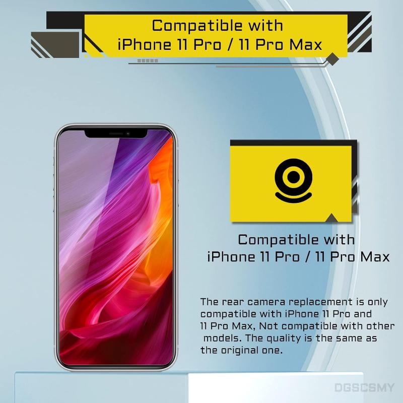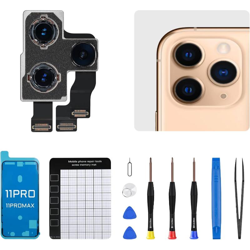 Replacement rear camera module for iPhone 11 Pro Max, designed to restore triple-lens functionality for wide, ultra-wide, and telephoto photography.