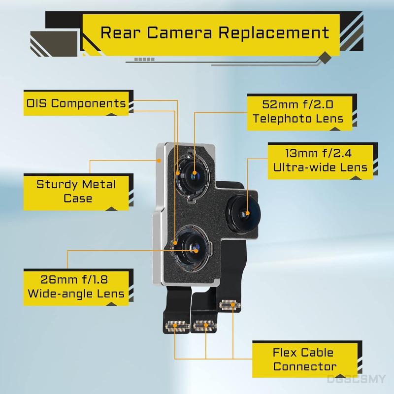 • Includes: 12 MP wide-angle lens, 12 MP ultra-wide-angle lens, 12 MP telephoto lens, and flex cable