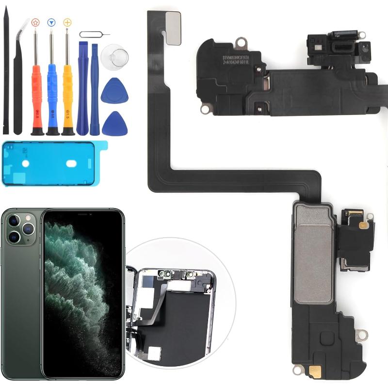 This earpiece speaker replacement is specifically designed for the iPhone 11 Pro Max. If your device's earpiece speaker is damaged, producing distorted sound, or not working at all, this replacement part will help restore the original audio quality. It's essential to note that this part includes the earpiece speaker, proximity sensor, ambient light sensor, and flood illuminator.
