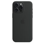 A premium black silicone case for iPhone 15 Pro, offering a soft-touch finish, precise fit, and reliable protection against daily wear.