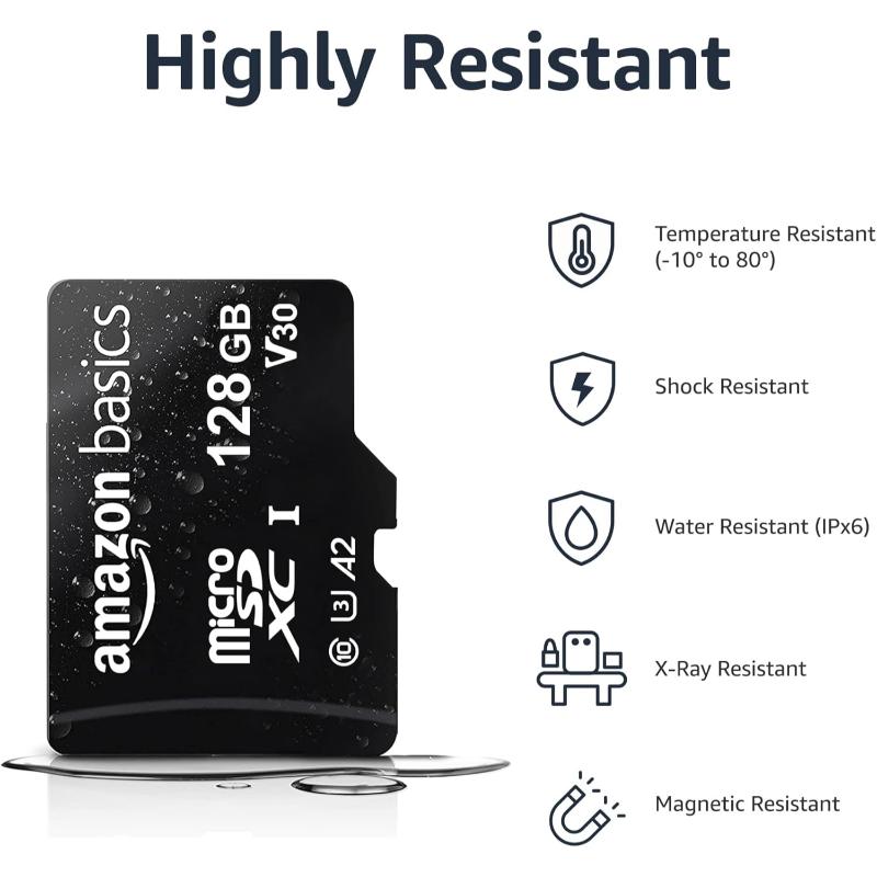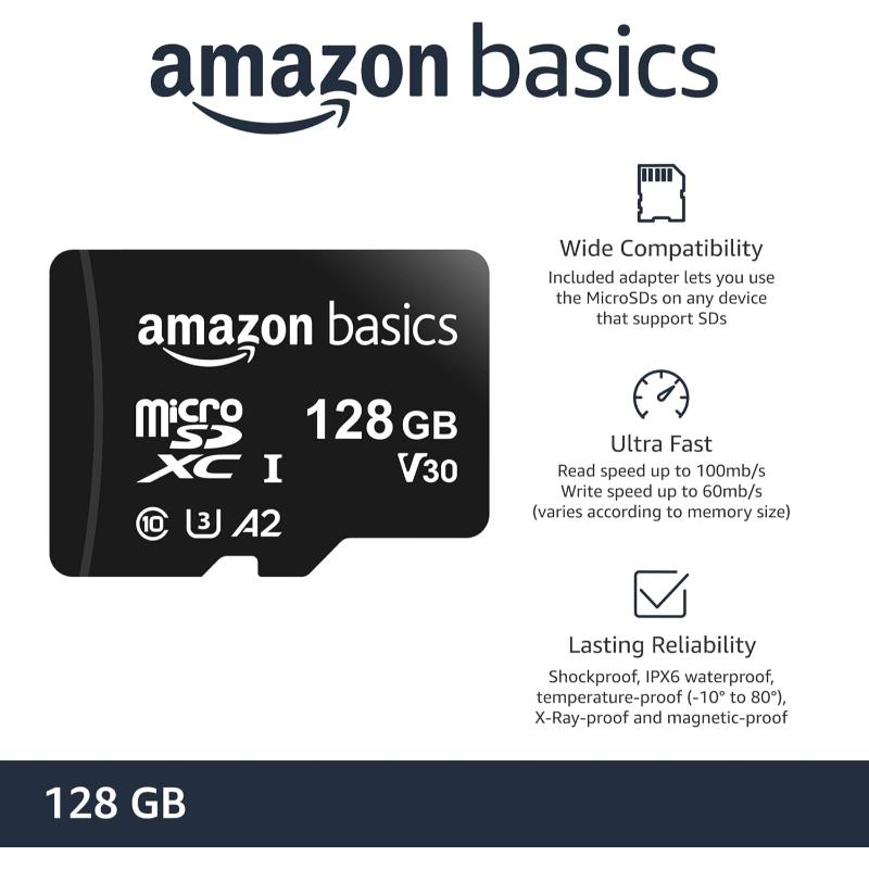 A reliable and affordable Microdrive 128 GB microSD UHS-I memory card, ideal for expanding storage on smartphones, tablets, action cameras, drones, and dashcams. Rated Class 10, it supports stable Full HD video recording and general data transfer tasks. Built for durability, it offers resistance to water, shock, vibration, X‑rays, and temperature variations—perfect for everyday use and light outdoor applications.