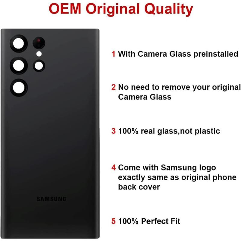 Premium replacement back glass for Samsung Galaxy S22 Ultra, restoring the original design and functionality of your device.