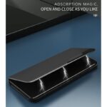 Black flip-wallet case for Galaxy S22 Ultra featuring magnetic closure, card slots, cash pocket, kickstand, auto wake/sleep, and Qi wireless charging compatibility.
