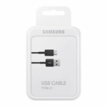 This is a data and charging cable manufactured by Samsung, featuring a USB Type-C connector. It is designed for connecting compatible Samsung smartphones, tablets, and other devices with a USB-C port to power adapters for charging or to computers for data transfer. The USB Type-C connector is reversible, allowing it to be plugged in either orientation. Depending on the specific model, these cables support various power delivery levels for fast charging and different USB standards for data transfer speeds.