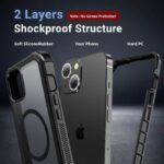 Durable dual-layer case for iPhone 13 with shock-absorbing TPU, hard PC shell, reinforced corners, raised bezels for screen and camera protection, precise cutouts, and textured grip for secure handling.