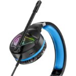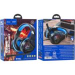W104 is a blue, head‑mounted gaming headset featuring 50 mm drivers, omnidirectional mic, USB + 3.5 mm connectivity, and colorful LED lights—designed for immersive and clear gaming sessions.