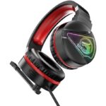 W104 is a red LED‑lit gaming headset with 50 mm drivers, a flexible mic, dual USB/3.5 mm connectivity, and padded comfort—built to enhance both gameplay and voice chat.