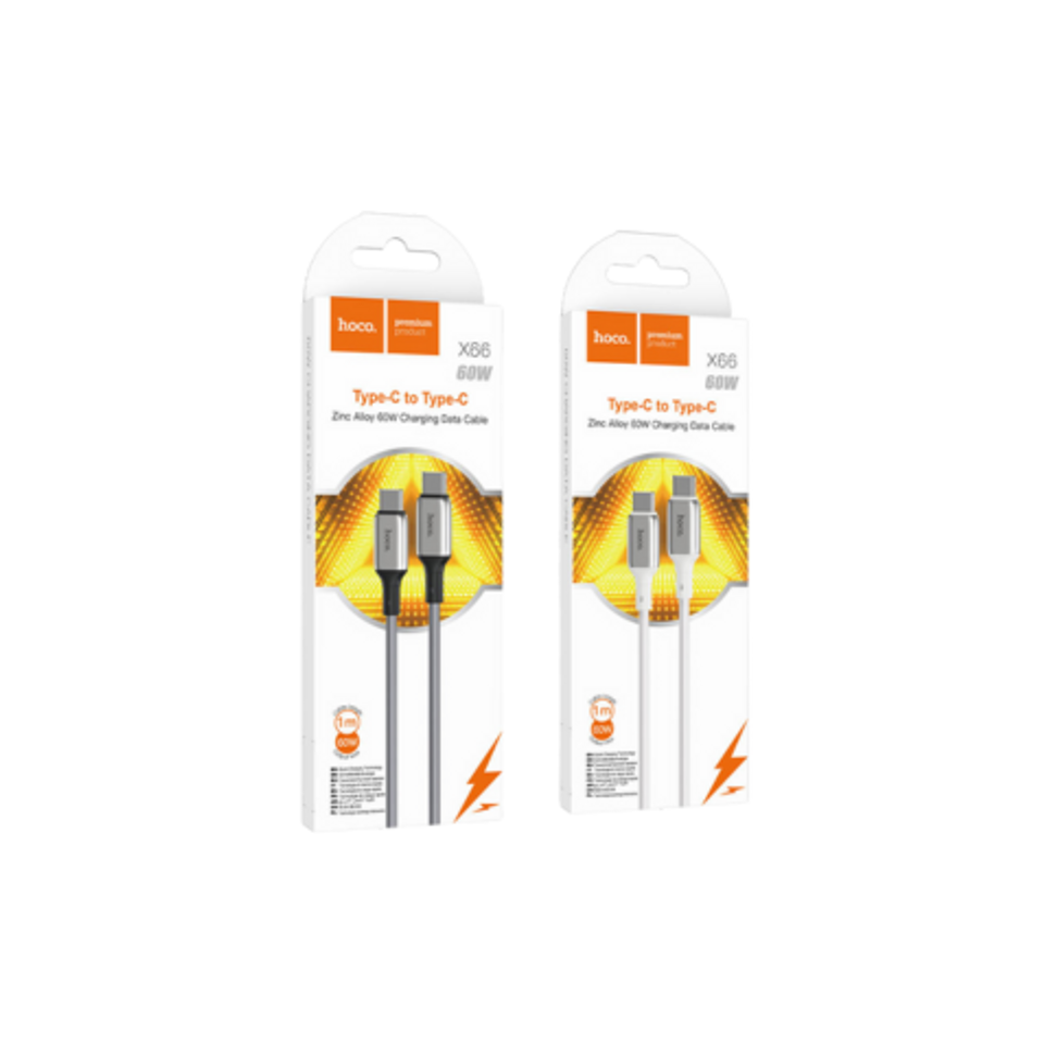 X66 Howdy, Type-C to Type-C charging data cable, 1m, zinc alloy connectors, matte TPE braid, support 60W / 3A power.